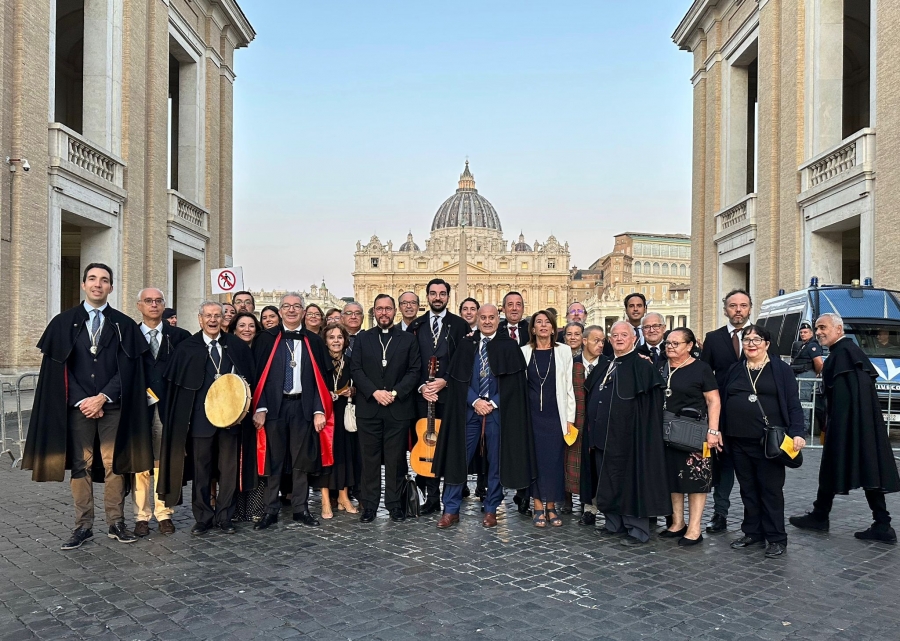 La Hermandad de la Aurora ha organizado un viaje de peregrinación a la Ciudad del Vaticano de tres días, en el que se encuentran inmersos actualmente. El fin de la misma ha sido el de acudir a la Audiencia con Su Santidad el Papa Francisco, que ha tenido lugar esta mañana. Allí, los hermanos Auroreros han sido recibidos y han cantado sus Divinas Alabanzas en la Plaza de San Pedro ante la presencia del Papa.