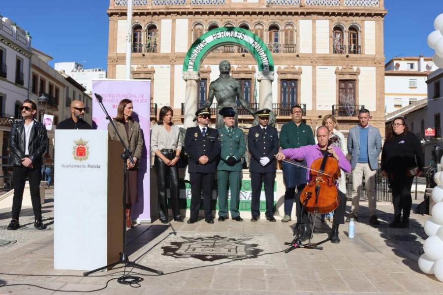 El Ayuntamiento de Ronda puso fin a su agenda de actividades referentes al 25-N con un acto institucional en la plaza del Socorro, presidido por la alcaldesa de la ciudad, María de la Paz Fernández. El estilista Alberto Lara, el chef dos estrellas Michelín Benito Gómez y el periodista de Canal Charry, Manolo Guerrero, dieron lectura a un manifiesto a favor de la libertad de las mujeres, acompañados de la música de Erwin Graffe, profesor del Conservatorio Profesional Ramón Corrales.