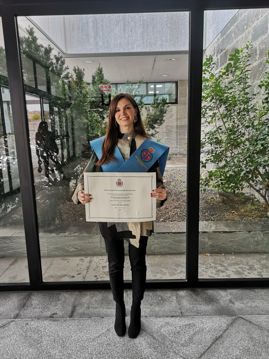 Aunque Pilar concluyó sus estudios en junio del año pasado, ha sido este 30 de noviembre cuando se ha llevado a cabo el acto de entrega de este premio, presidido por el rector de la URJC, Javier Ramos López.