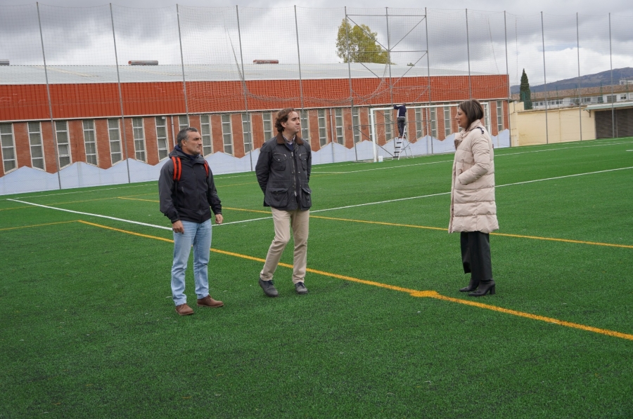 El Ayuntamiento de Ronda está ultimando la sustitución del césped artificial del campo de fútbol de El Fuerte, según ha explicado este jueves la alcaldesa, María de la Paz Fernández, que ha visitado la zona, acompañada por el concejal de Deportes, Bernardo Crespo, entre otros. Fernández ha recordado que en este caso, la inversión es de en torno a 218.000 euros.