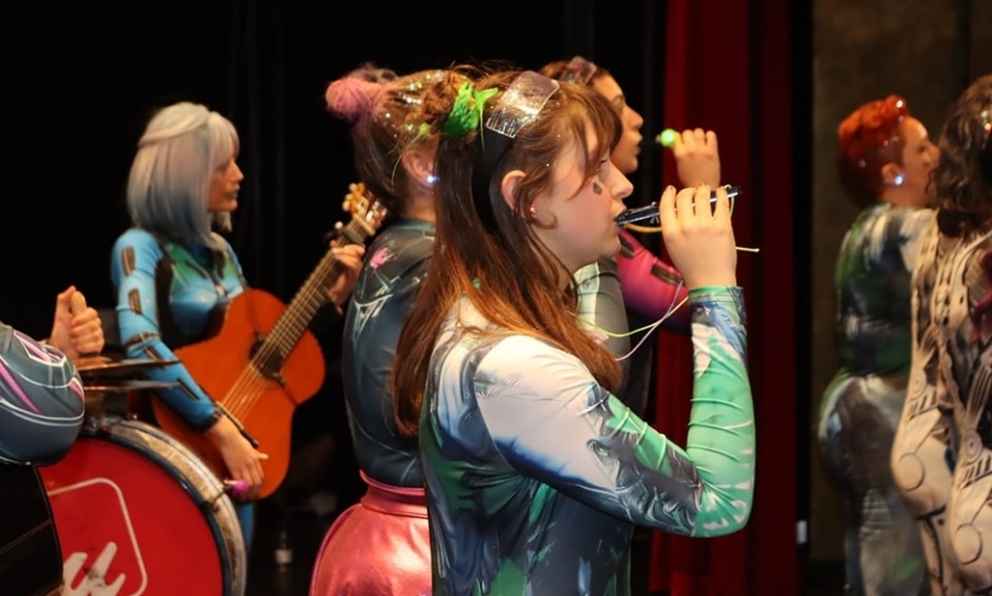 La última agrupación local en pisar el escenario fue la de chirigota “Las que están hartitas de empujar”. Las chicas de Ainhoa Calle subieron sus cubos, sus escobas y la maquinaria de limpieza de “Soli-arza”. Además, le dieron una sorpresa a una de sus integrantes. Todas sus compañeras, miembros de otras agrupaciones y varios familiares se reunieron en el escenario para cantarle a la Reina Absoluta, Ainara Torres.