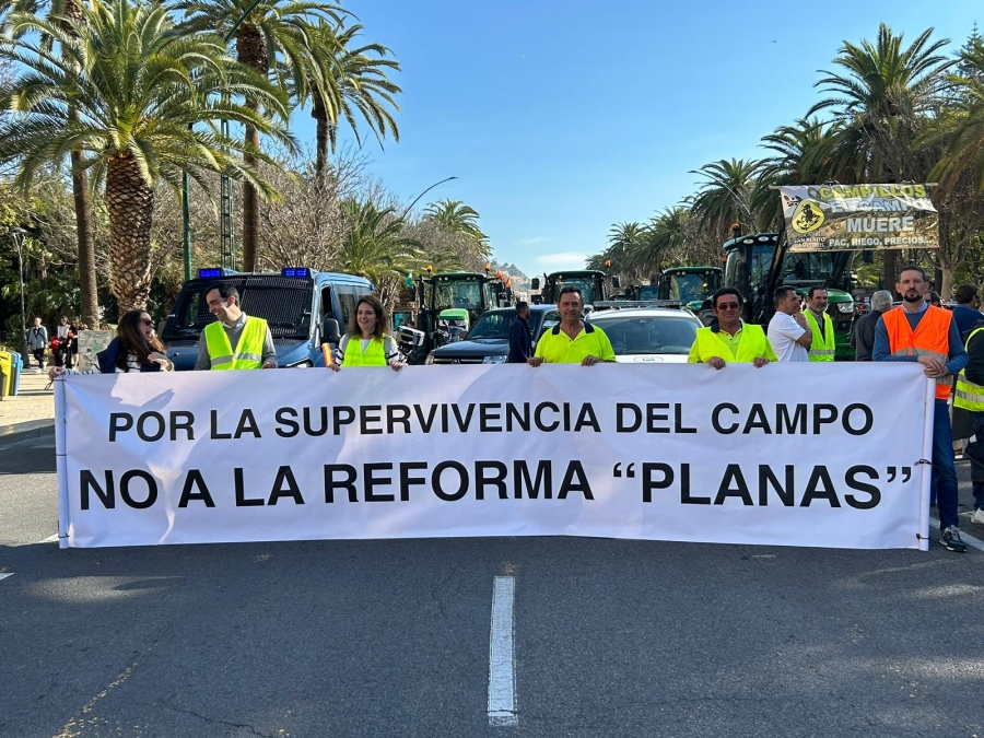 Las acciones reivindicativas de los trabajadores del campo en toda la provincia se han centralizado en la jornada de hoy en la capital malagueña. Según datos de la subdelegación del Gobierno, se han concentrado unas mil personas, cerca de un centenar de tractores con el objetivo de protestar contra las políticas agrarias, tanto nacionales como europeas.