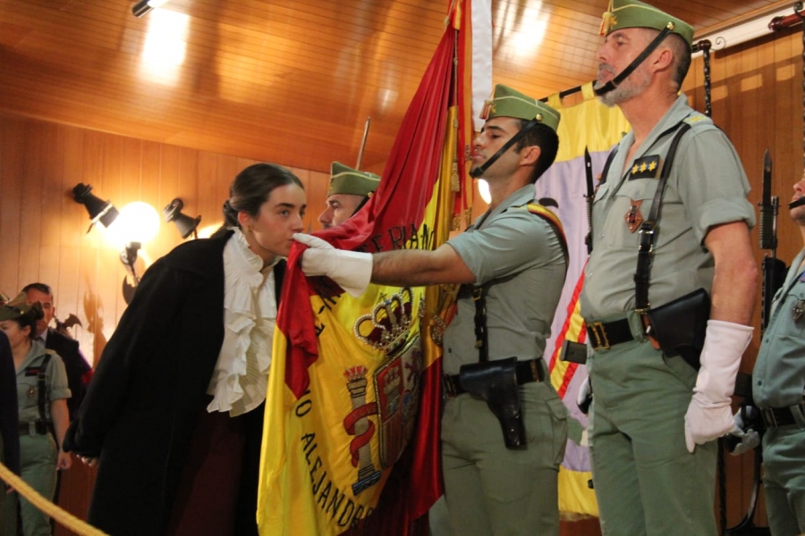 El salón de actos del Cuartel de La Legión en Ronda ha acogido este mediodía una jura de Bandera para personal civil en el que unas 200 personas han sellado su compromiso con la enseña nacional, entre ellas las Damas Goyescas de la última Feria de Pedro Romero y su presidenta, Pepi González.