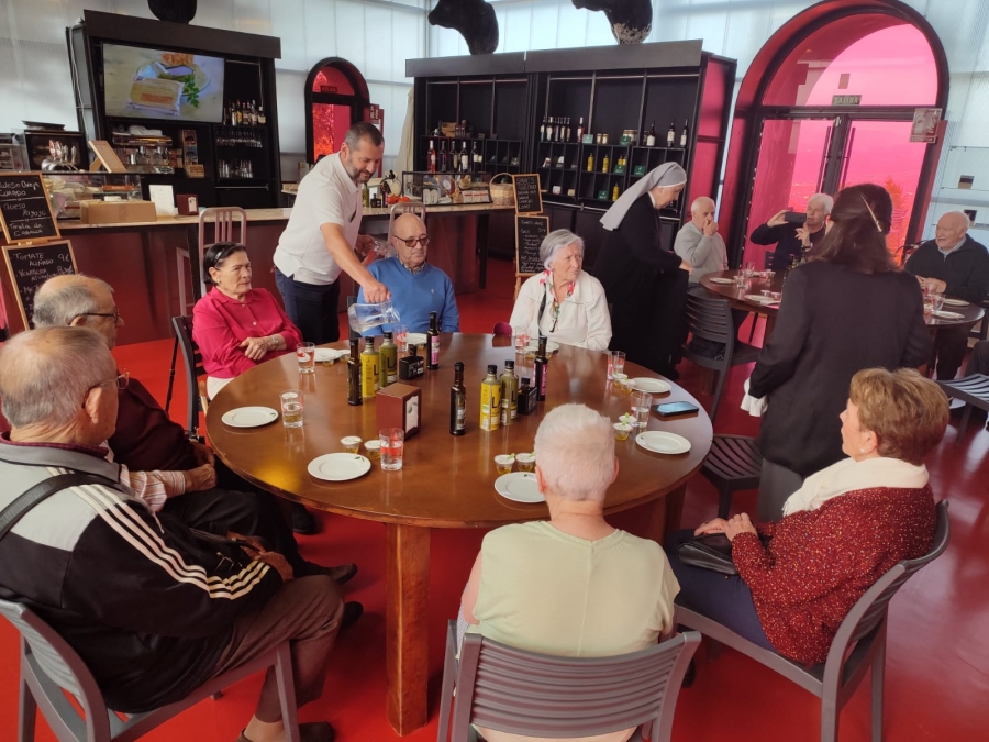 Alrededor de una veintena de usuarios del centro residencial de las Hermanitas de los Pobres participaron en la mañana de ayer en una cata de aceites en las instalaciones de la LA Organic, organizada por esta empresa productora y oleo turística, ubicada en los terrenos de La Amarilla.