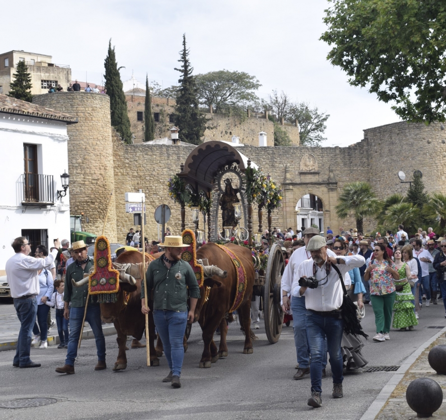 Ronda celebra la Romería en honor a la Virgen de la Cabeza durante el día de hoy, el primer domingo de mayo. Decenas de personas se han unido a la comitiva que ha acompañado a la Reina de la Serranía en su recorrido desde la iglesia de la Merced hasta la llamada explanada de Los Pinos, donde se reunirán todos los romeros vivir una jornada de convivencia y de fe.