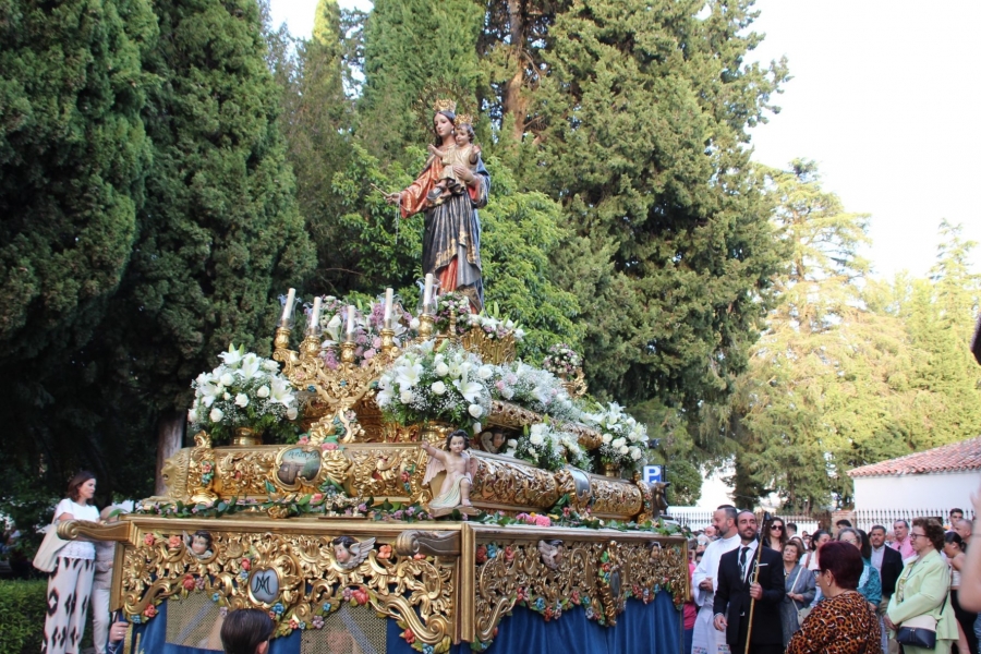 Desde el Santuario que tiene como nombre el de la imagen mariana, el cortejo comenzó su recorrido rodeando la plaza Duquesa de Parcent, para visitar a las Hermanitas de la Cruz, que deleitaron a los presentes con sus cantos hacia la Virgen. Más adelante, frente a la Colegiata de Santa María la Mayor, niños de comunión de la parroquia también quisieron dedicarle canciones y oraciones a María Auxiliadora.