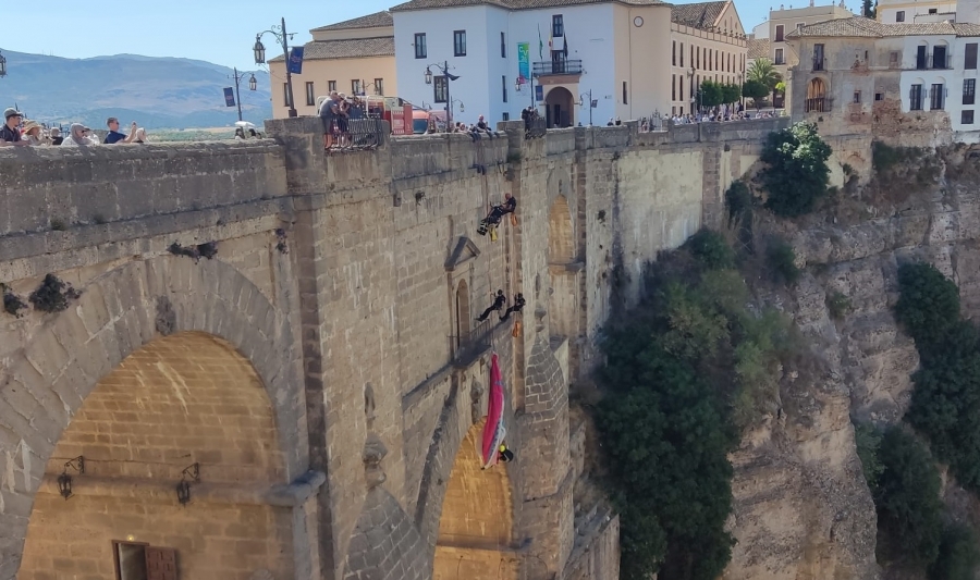 Esta mañana el Puente Nuevo se ha convertido en el escenario de un simulacro de rescate que ha servido como ejercicio de coordinación de varios cuerpos de emergencias. Esta exhibición se ha enmarcado en la programación de las II Jornadas de Montaña, Barranquismo y Espeleología, que ponen esta tarde su punto y final.
