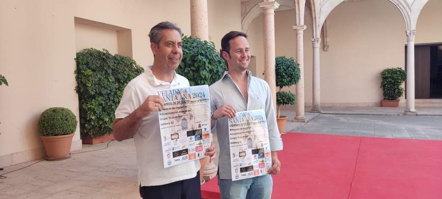 El delegado municipal de Participación Ciudadana, Ignacio Alonso, y el Hermano Mayor de la Hermandad de Nuestro Señor Orando en el Huerto y María Santísima Consuelo de las Tristezas, Francisco Pérez, han presentado esta mañana el cartel anunciador de la Velada de Santa Ana, un encuentro tradicional que llevaba sin celebrarse desde hace quince años.