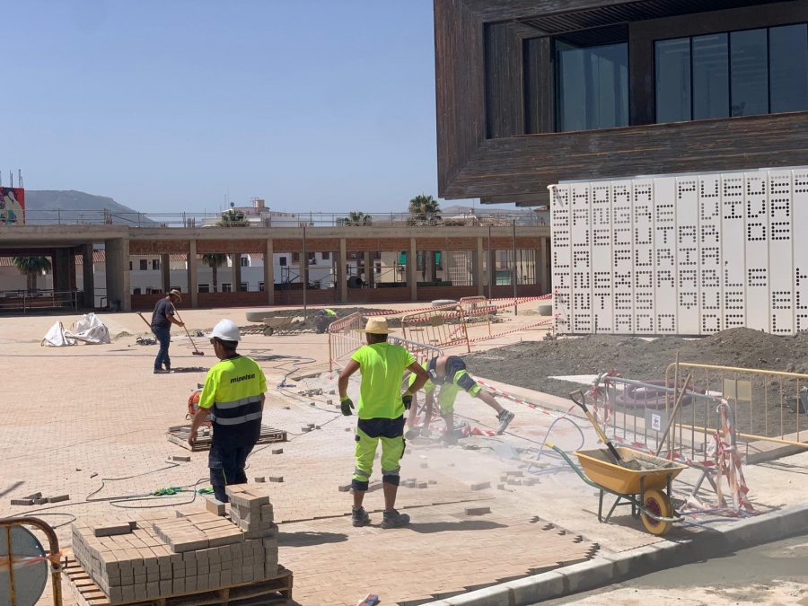 La delegada de Obras, Concha Muñoz, ha dado a conocer que los trabajos para la construcción de una plaza junto a la Biblioteca Comarcal Adolfo Suárez y la futura estación de autobuses ya se encuentran al 95% de su ejecución, solo a falta de culminar los espacios verdes y de instalar las señales de tráfico.