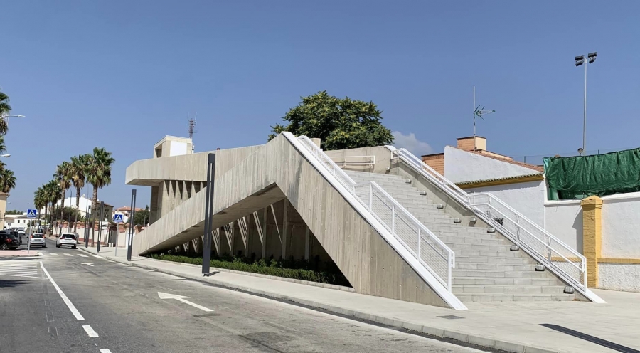 Se trata de una infraestructura sobreelevada, de unos 120 metros de longitud, que conecta la calle Guadalcobacín con la avenida Victoria, que facilita el acceso a la nueva plaza construida junto a la biblioteca Adolfo Suárez y que también permitirá la conexión peatonal con la futura estación de autobuses.
