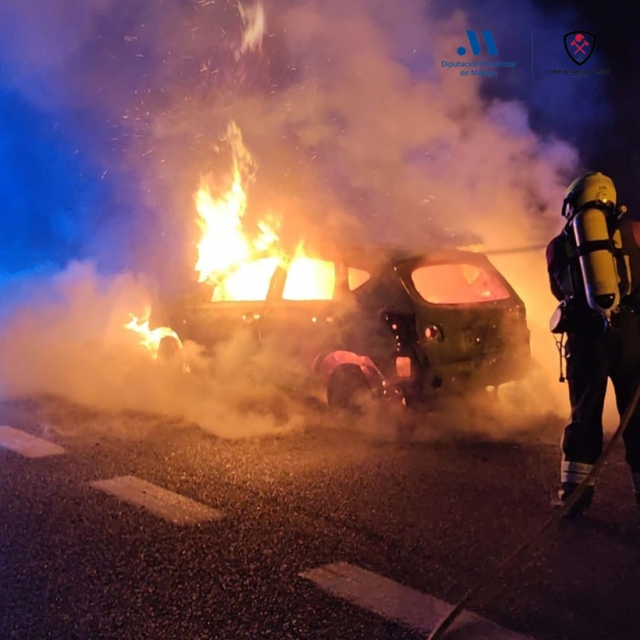 Efectivos del Consorcio Provincial de Bomberos tuvieron que intervenir la pasada noche en el incendio de un vehículo que ha tenido lugar en la carretera A-374, que conecta Ronda con Sevilla.