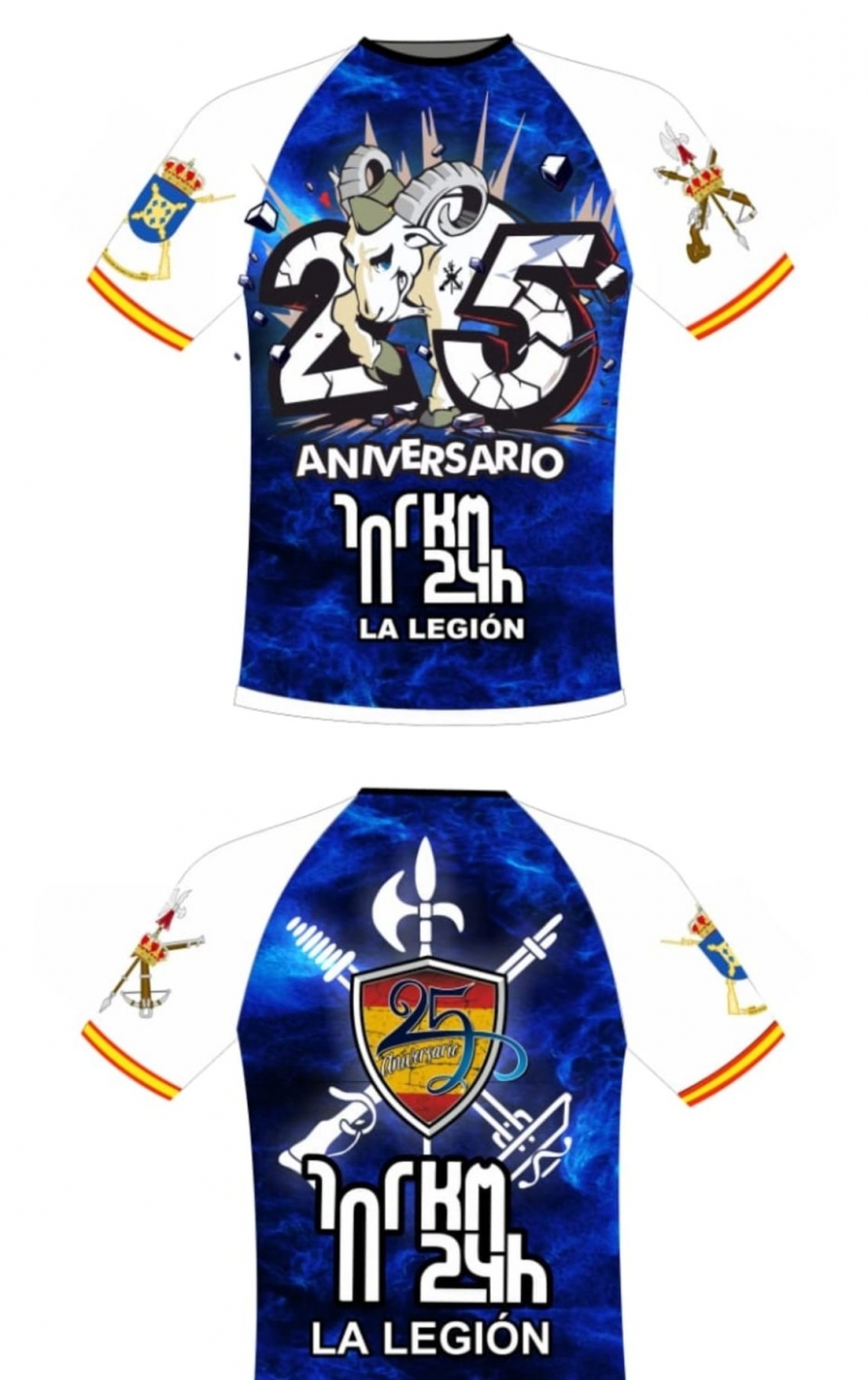 Denia es también el artífice del logotipo conmemorativo del 25 aniversario, que refleja la enseña nacional delante del clásico emblema de la Legión Española con ballesta, arcabuz y alabarda. La camiseta que recibirán los participantes es azul, con mangas blancas y los emblemas de La Legión y el Tercio Alejandro Farnesio en las mangas.