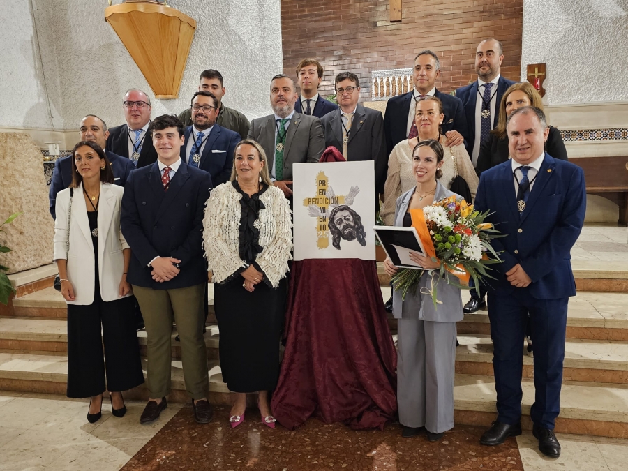 Se trata de una obra de la artista rondeña Andrea Rosado. En la imagen se puede ver el rostro de Nuestro Padre Jesús del Prendimiento junto a una cruz dorada. La presentación tuvo lugar el pasado sábado, tras la misa del tercer día del triduo en honor a la titular mariana de la hermandad, a la que acudieron autoridades del mundo cofrade y concejales del Ayuntamiento de Ronda.
