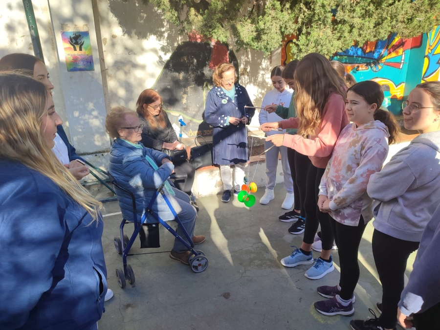 El IES Profesor Gonzalo Huesa acogió en la mañana de ayer una actividad organizada por Atende, la empresa filial de Clece que gestiona el servicio de Ayuda a Domicilio del Ayuntamiento de Ronda, en la que doce usuarios de edad avanzada han compartido juegos en el patio del centro educativo con un centenar de alumnos.