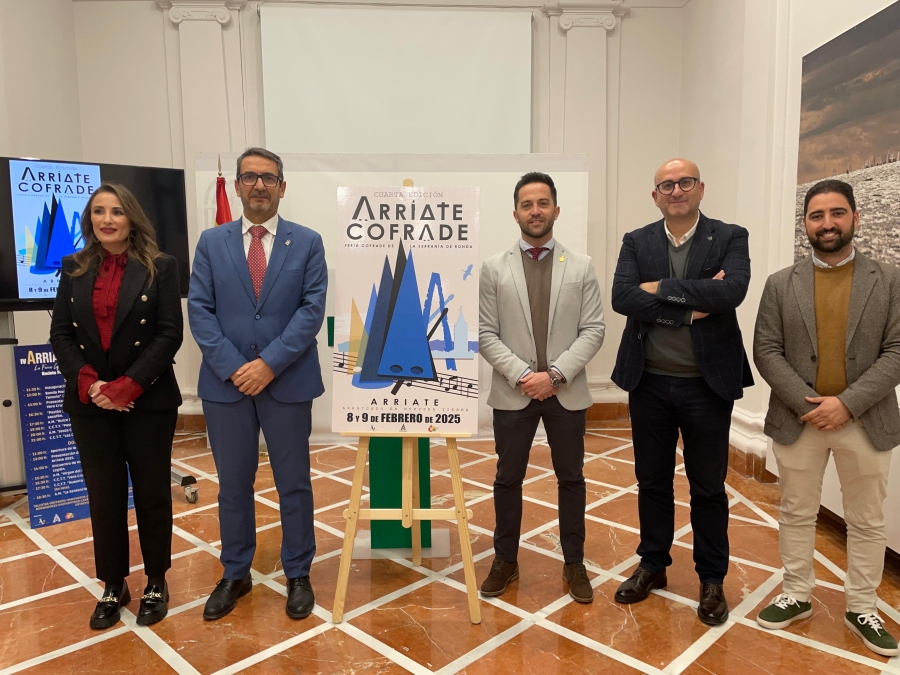 Arriate celebra este fin de semana, los días 8 y 9 de febrero, la IV Feria de Arte Cofrade de la Serranía de Ronda, Arriate Cofrade. Hoy se ha presentado la iniciativa en la Diputación Provincial, con la presencia del delegado territorial de Turismo, Cultura y Deporte, Carlos García; el alcalde de Arriate, Francisco Javier Anet, y el diputado provincial de Cultura, Educación y Juventud, Manuel López.