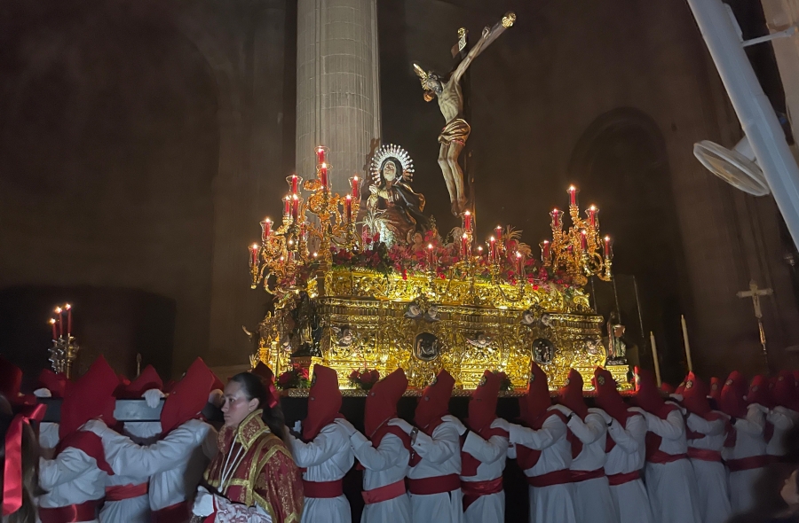 Un Miércoles Santo agridulce el de este 2025. Tras la decisión de la Hermandad de la Columna de realizar con normalidad su salida procesional por las calles de Ronda, la Hermandad Sacramental del Santísimo Cristo de la Sangre y Nuestra Señora del Mayor Dolor, por su parte, ha realizado su estación de penitencia en el interior de la Colegiata de Santa María la Mayor.