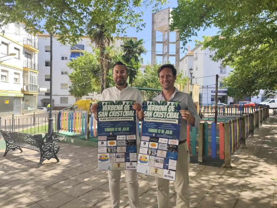 El delegado de Participación Ciudadana, Ignacio Alonso, junto al Hermano Mayor de la Hermandad de la Columna, Diego Sánchez, han presentado la tradicional verbena de San Cristóbal que se celebrará este sábado 12 en la plaza de la Esperanza durante todo el día.
