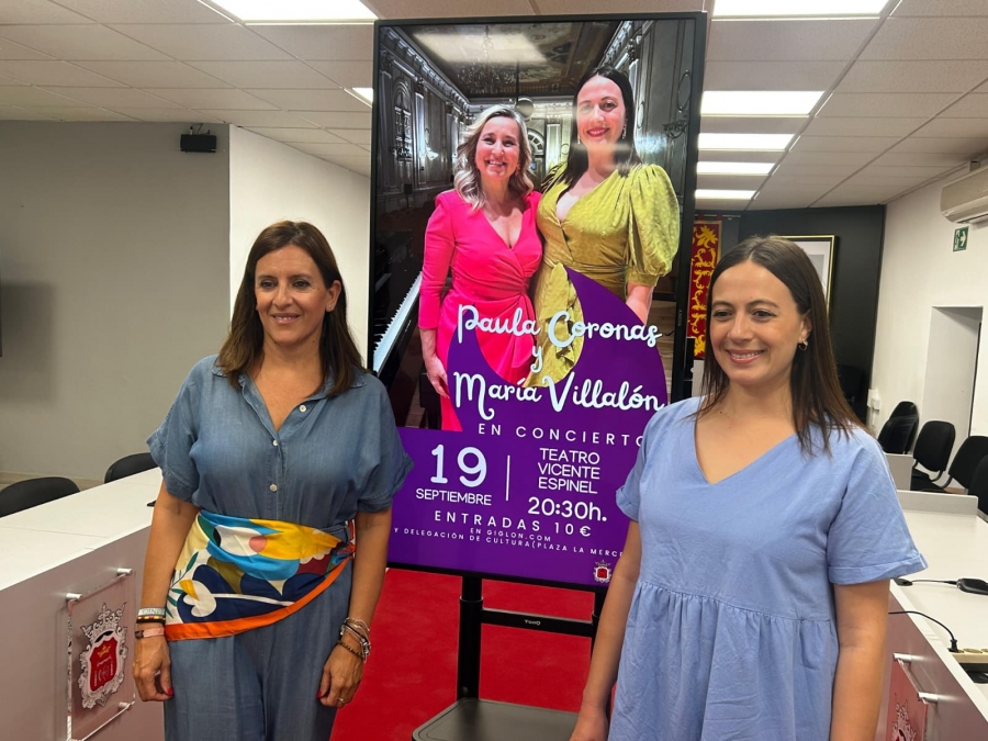 La delegada de Cultura, Rebeca Muñoz, ha dado a conocer que la pianista Paula Coronas y la cantante María Villalón ofrecerán este viernes un concierto en el teatro municipal Vicente Espinel, a las 20:30 horas, siendo su primera actuación conjunta en nuestra ciudad.