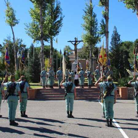Además, hubo una representación de la Brigada de La Legión y de los tercios Gran Capitán (Melilla), Duque de Alba (Ceuta) y Don Juan de Austria (Viator), con sus respectivos guiones y banderines, que participaron en un emotivo Homenaje a los Caídos en el que la viuda de Manuel Estrada, Pilar Reina, depositó una corona de flores ante el monumento que se ubica a los pies del Cristo de la Buena Muerte.
