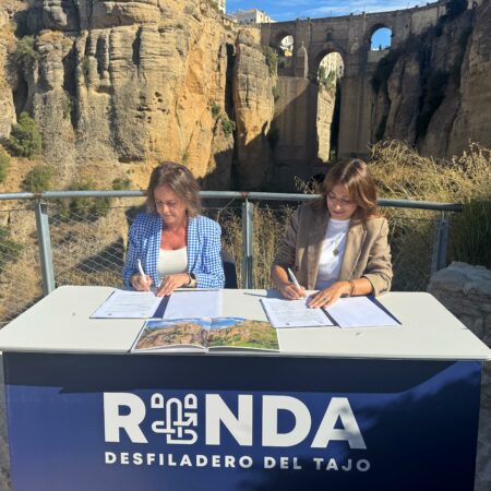 La firma se ha realizado en el mirador situado frente al Puente Nuevo y que forma parte de la primera fase del Desfiladero del Tajo. Tanto la consejera como la alcaldesa de la ciudad, María de la Paz Fernández, han destacado la importancia de la colaboración entre administraciones para poder realizar proyectos que ayuden a conservar el medio ambiente.