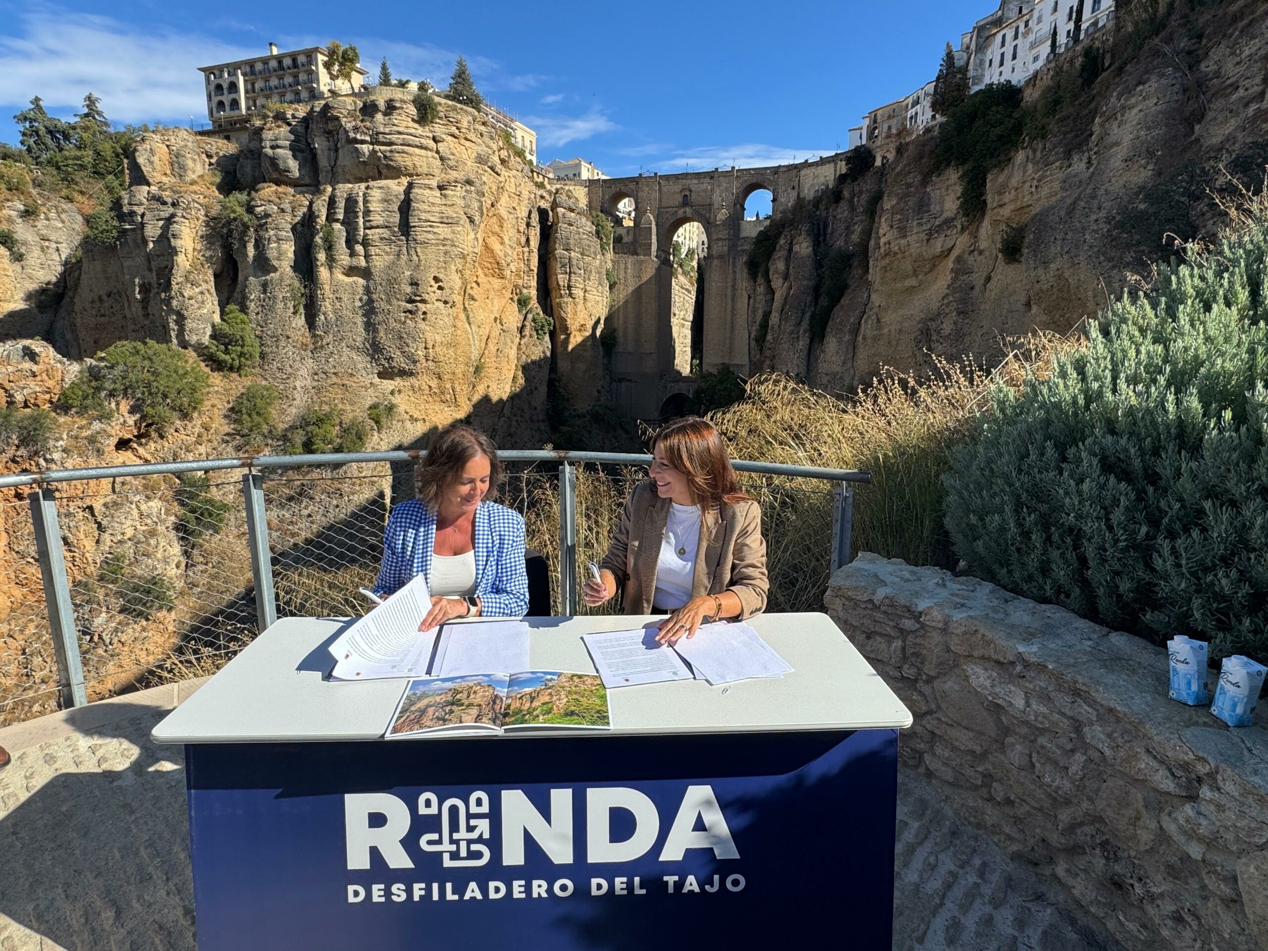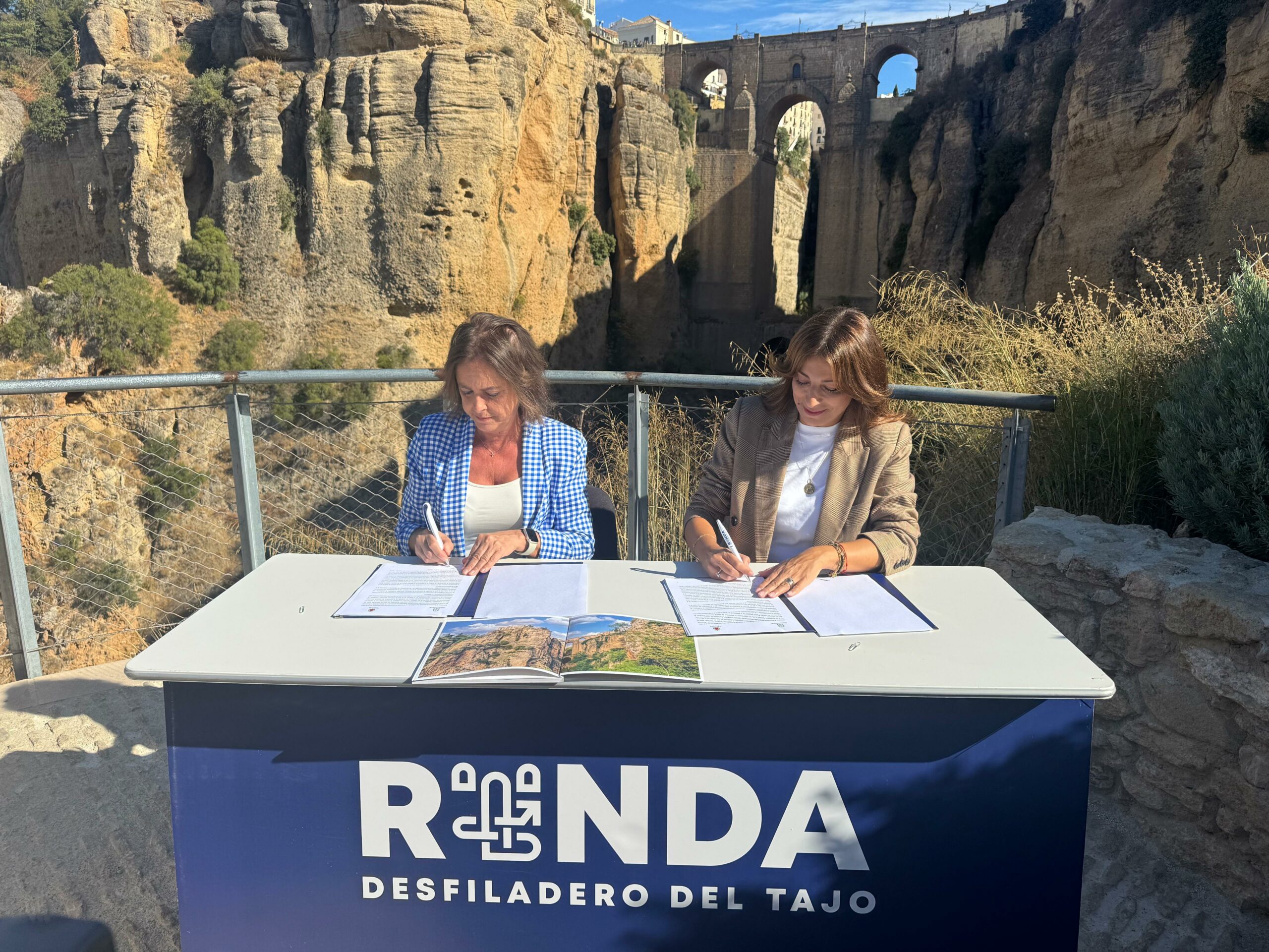 La firma se ha realizado en el mirador situado frente al Puente Nuevo y que forma parte de la primera fase del Desfiladero del Tajo. Tanto la consejera como la alcaldesa de la ciudad, María de la Paz Fernández, han destacado la importancia de la colaboración entre administraciones para poder realizar proyectos que ayuden a conservar el medio ambiente.