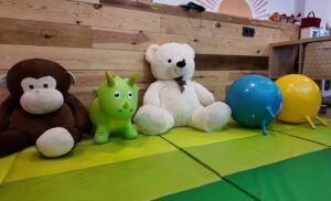 En esta área hay esterillas y colchonetas en el suelo para que se pueda disfrutar de esta zona desde la etapa del gateo. Los más mayores también disponen de diferentes juegos de mesas, libros y actividades.