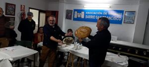 Tras la cata, la asociación vecinal ofreció un tapeo tradicional que reunió productos de la tierra: asadura en manteca casera, elaborada por la suegra de Nicolás; surtidos ibéricos de la Tienda de Trinidad; tortillitas de bacalao del Bar Ambigú; y un pan casero de tres kilos elaborado y donado por Isa y José del Río.