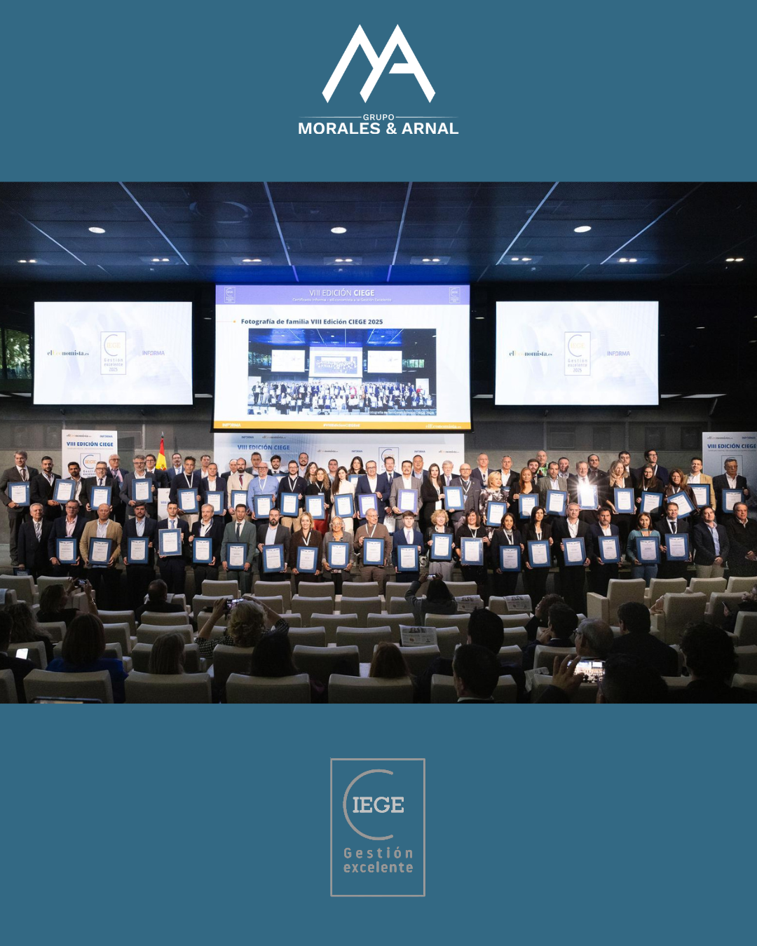 El Grupo Morales & Arnal ha recibido el premio a la Excelencia en la Gestión Empresarial en la gala de entrega de reconocimientos que organiza el prestigioso periódico nacional El Economista y la auditora DBK a las mejores prácticas en gestión empresarial.