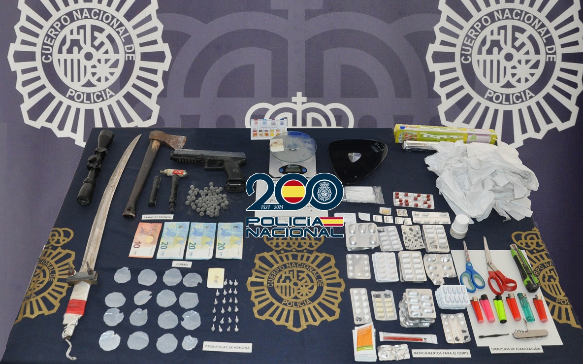 Fruto de la entrada y registro en la vivienda, los agentes intervinieron más de una veintena de papelinas de una mezcla de heroína y cocaína –llamado en el argot policial “rebujao”-, cajas de medicamentos, una balanza de precisión, un arma simulada y varios balines, y dinero en efectivo. Además, se constató que el inmueble carecía de contador eléctrico y que permanecía enganchado a la red pública de suministro de manera ilegal.