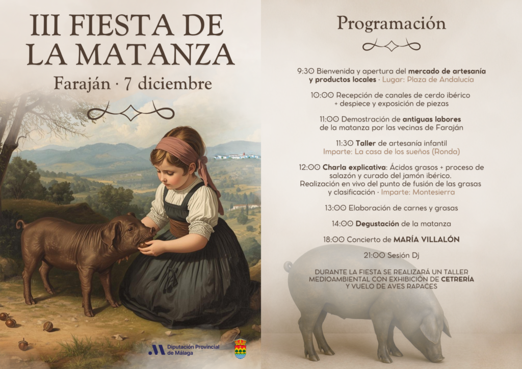 “Está todo muy relacionado porque se tiene constancia de las labores de despiece y matanza en Faraján desde el siglo XVIII, en fechas cercanas a la festividad de nuestra patrona, a la que llamaban La Chicharrona”, apunta el alcalde, quien ha invitado a rondeños y serranos a que acudan en estos días a su localidad.