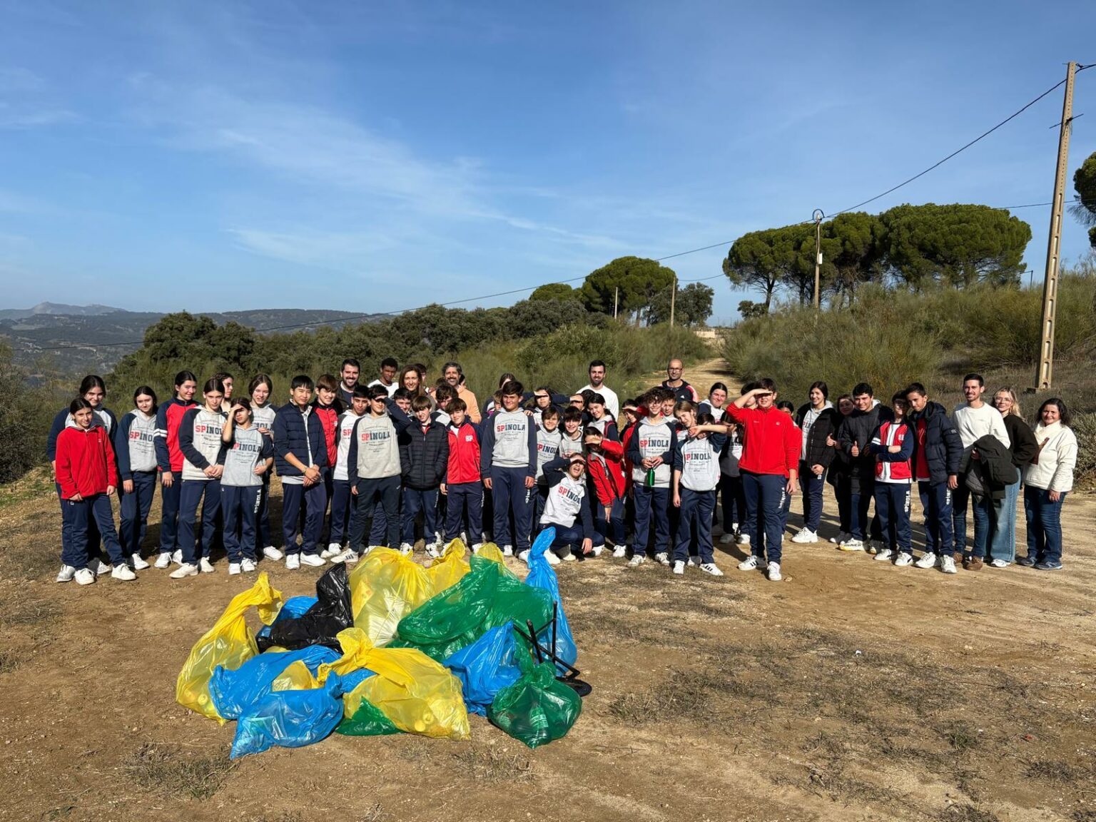 El entorno natural de la Virgen de la Cabeza amaneció hoy un poco más limpio gracias a la iniciativa conjunta del Colegio Sagrado Corazón de Ronda y Paradores, que han organizado una jornada de retirada de residuos en este enclave tan frecuentado por los rondeños.
