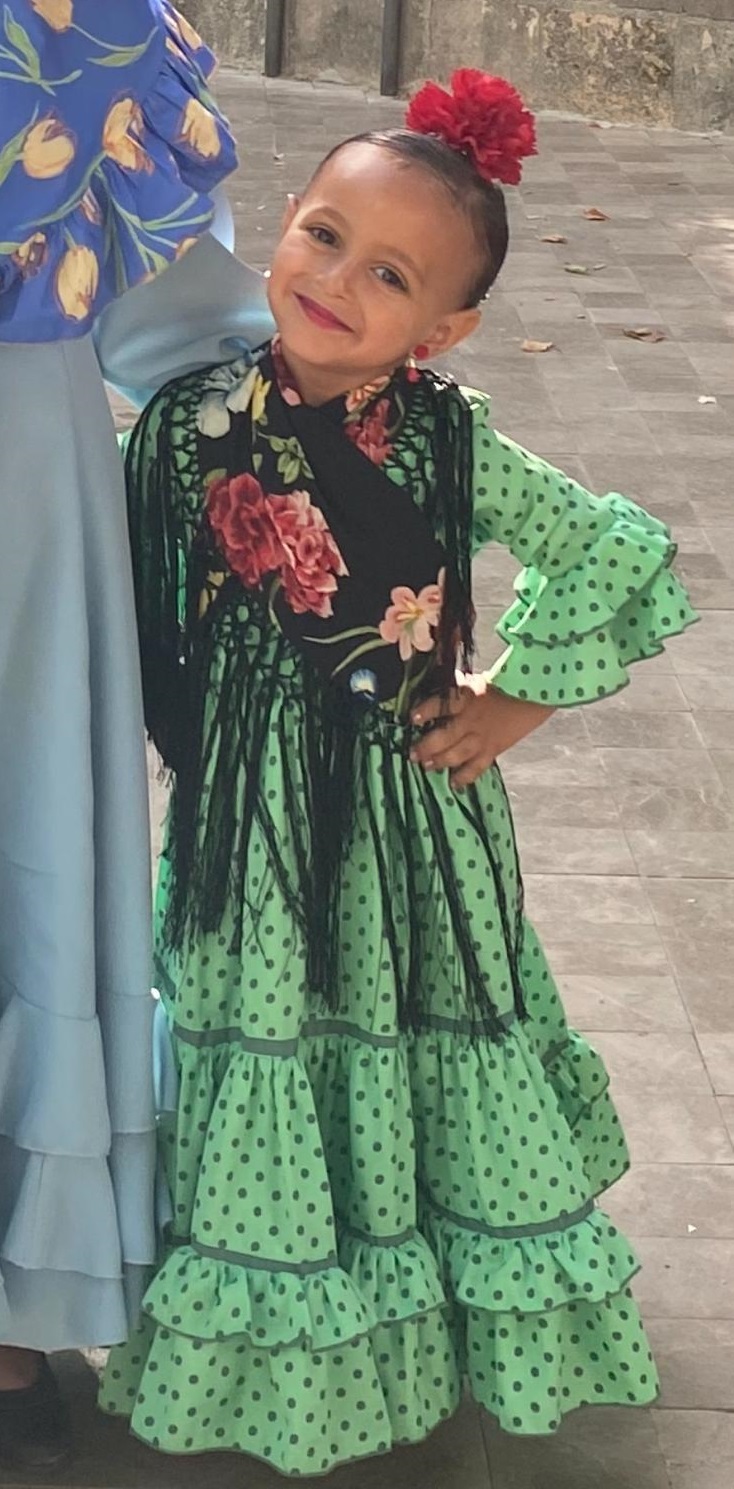La pequeña, además de llevar el nombre de una emoción, está bautizada por uno de los palos más conocidos del flamenco: las alegrías. Un arte que ha vivido de cerca gracias a su madre, Aída, y que ahora muestra cuando se le presenta la ocasión.