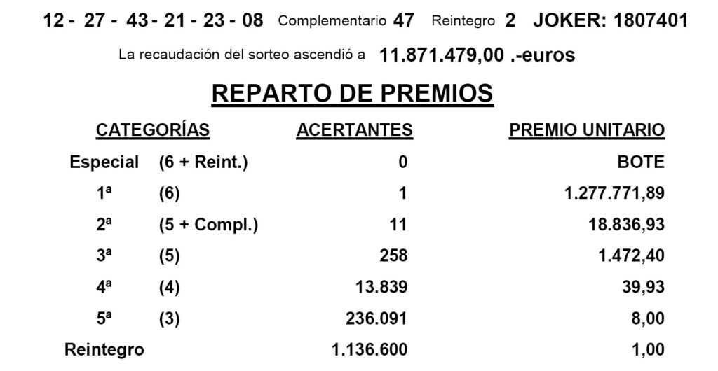 No obstante, Ortiz insiste en que es una gran cantidad y que no pueden estar más orgullosos y felices. Esta ha sido la combinación ganadora y el reparto final de premios: