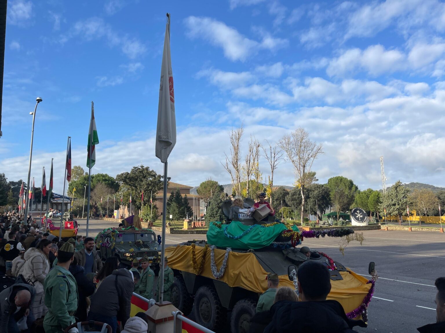 Los Reyes Magos de Oriente han realizado una primera parada esta mañana en el Cuartel de La Legión en Ronda antes de recorrer las calles de la ciudad. El coronel Fernando Sánchez, Jefe del 4º Tercio, ha recordado que se trata de uno de los días más especiales del año en el cuartel ya que los más pequeños son los grandes protagonistas y su ilusión contagia a todos los miembros de las diferentes unidades: