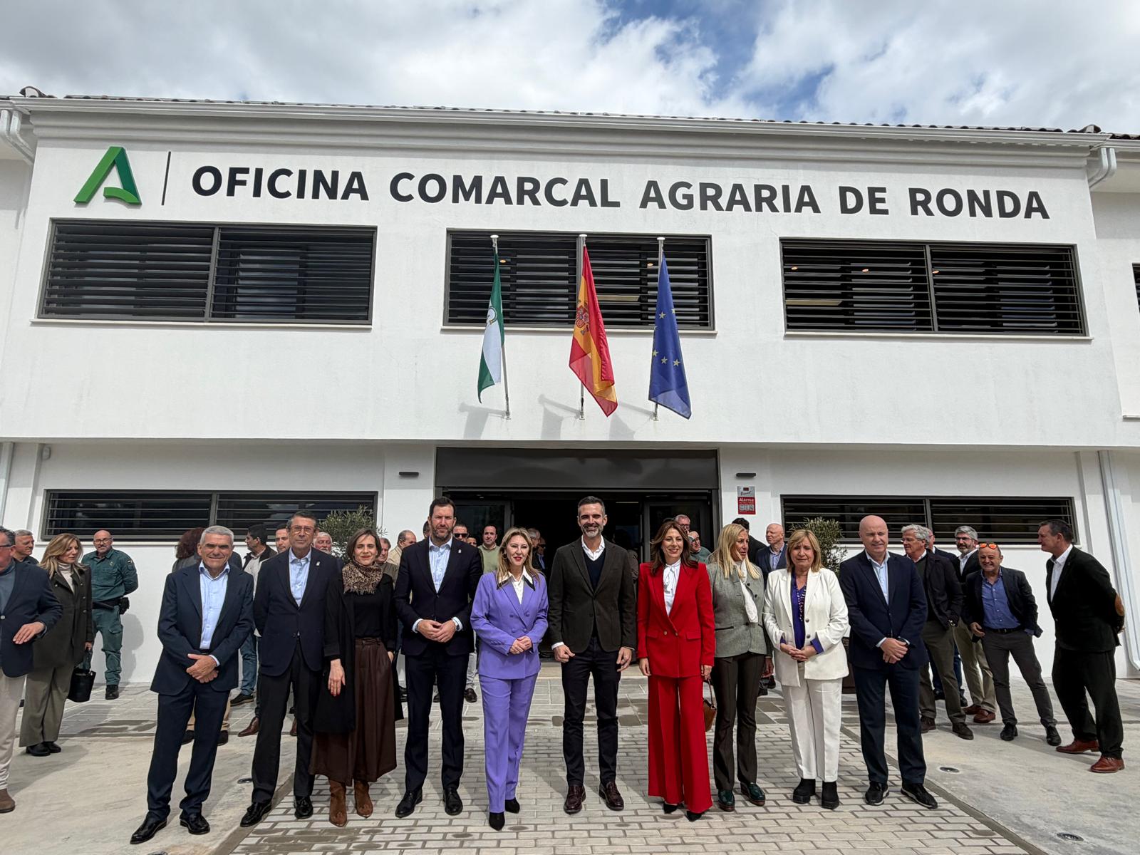 El consejero de Desarrollo Rural, Ramón Fernández-Pacheco, y la consejera de Economía, Carolina España, han inaugurado oficialmente la nueva sede de la Oficina Comarcal Agraria (OCA), ubicada en la calle Fernando de los Ríos, en el edificio conocido como La Isla, cedido por el Ayuntamiento de Ronda. En total, se han invertido 1,7 millones de euros en la puesta en marcha de este espacio.