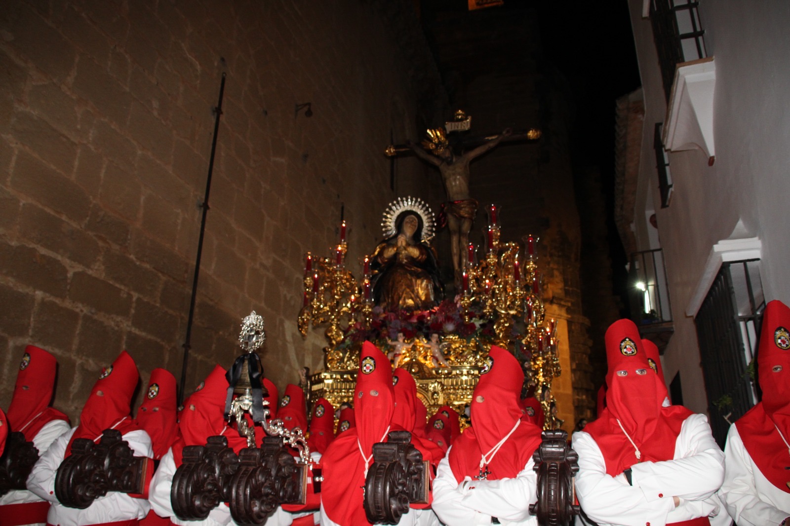 La noche del Miércoles Santo volvió a recuperar uno de sus momentos más esperados en Ronda con la salida procesional de la Hermandad Sacramental del Santísimo Cristo de la Sangre y Nuestra Señora del Mayor Dolor. A las 23:00 horas, con una puntualidad rigurosa, la corporación abría las puertas de la Iglesia de Santa María la Mayor, devolviendo a las calles una estampa que no se había podido disfrutar en los dos últimos años debido a las adversas condiciones meteorológicas.