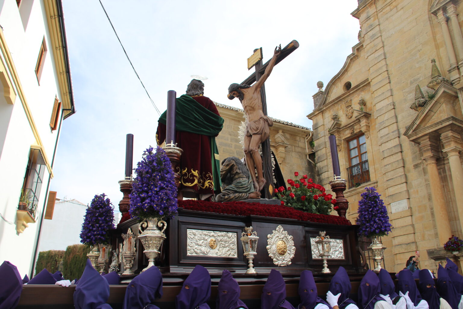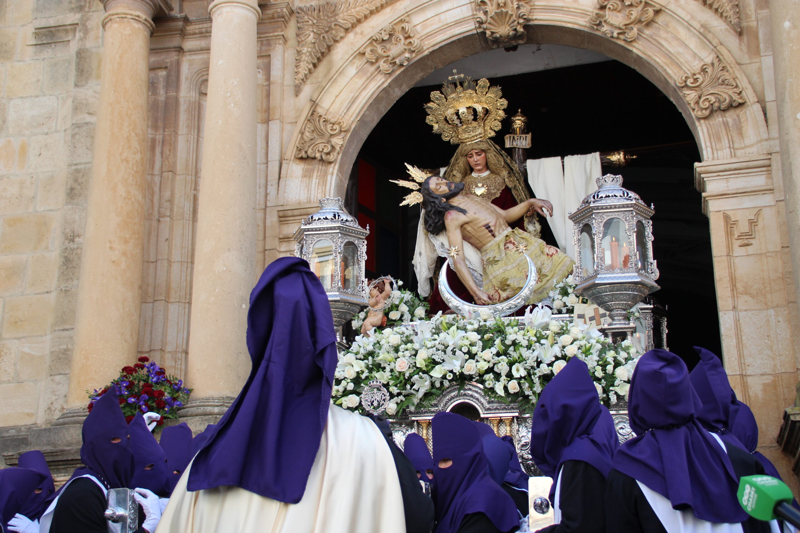 La Venerable Hermandad Trinitaria del Santísimo Cristo de los Remedios y Nuestra Señora de las Angustias ha sido la primera en realizar su estación penitencial por las calles de Ronda en un soleado Viernes Santo, con numerosos fieles que no han querido perderse un recorrido que ha comenzado a las doce del mediodía desde la iglesia de Los Descalzos.
