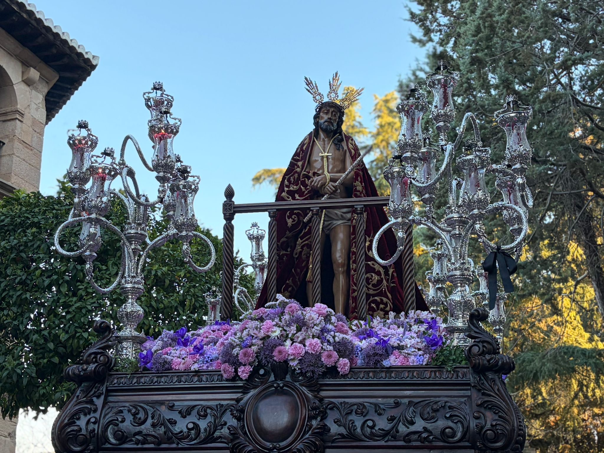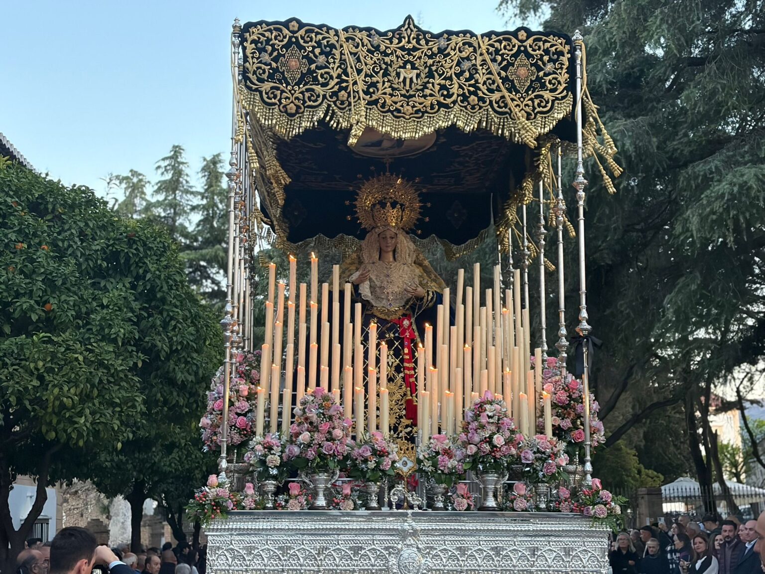 La hermandad ha contado este año con una importante novedad, ya que el antiguo trono de la Virgen del Buen Amor se ha adaptado a paso de costal, con una nueva parihuela, aunque todavía no está completo y será uno de los principales retos de la nueva junta de gobierno que encabeza Miguel Arias. La titular mariana de la corporación ha estrenado saya en la estación penitencial de hoy, en la que ha vuelto a portar la faja de oficial general donada por el teniente general Julio Salom.