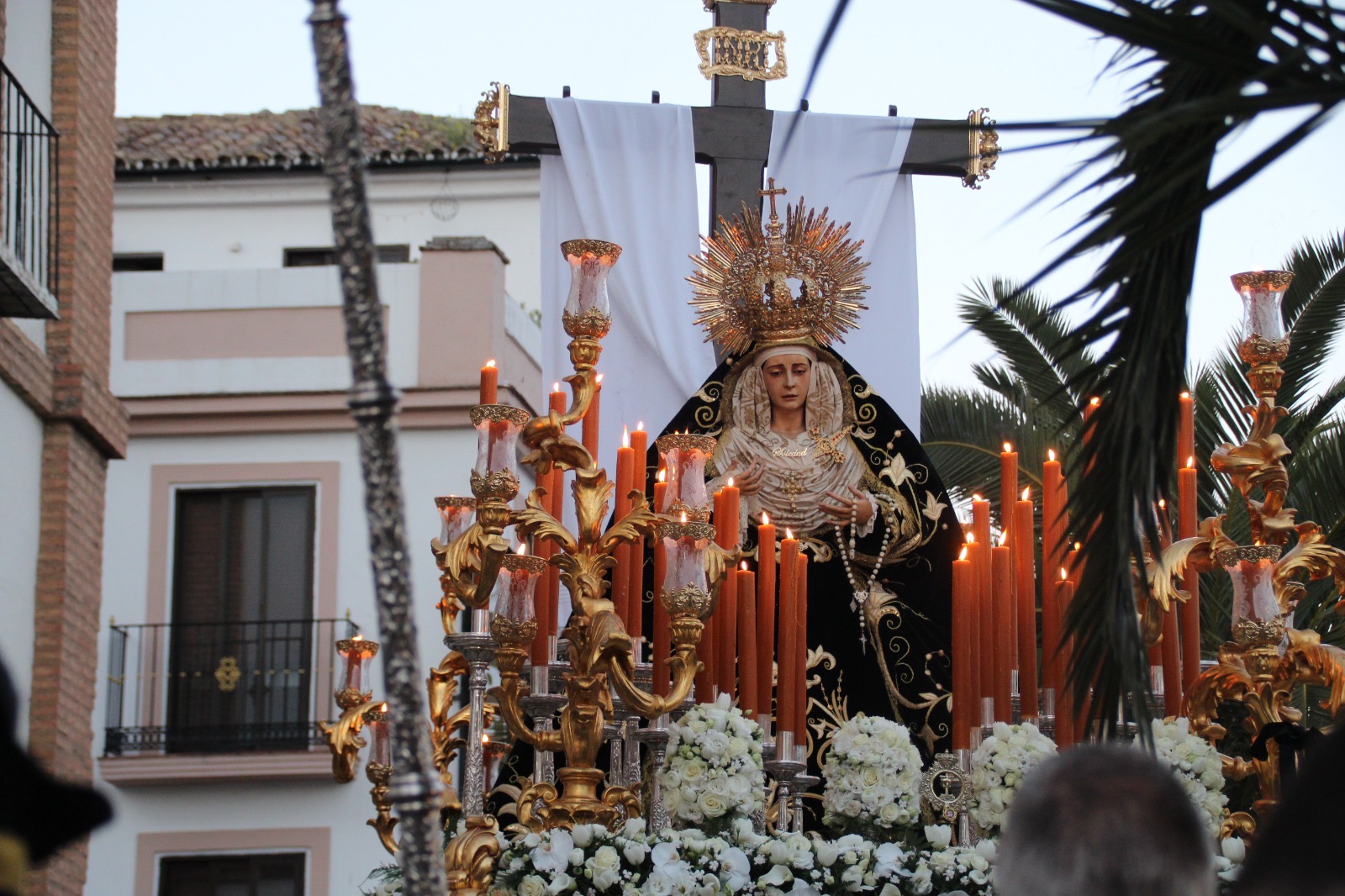 La Hermandad de María Santísima en la Soledad ya se encuentra en las calles de Ronda tras realizar su salida a las 20:30 horas desde la iglesia de la Merced, dando inicio a su estación de penitencia en la noche del Viernes Santo.