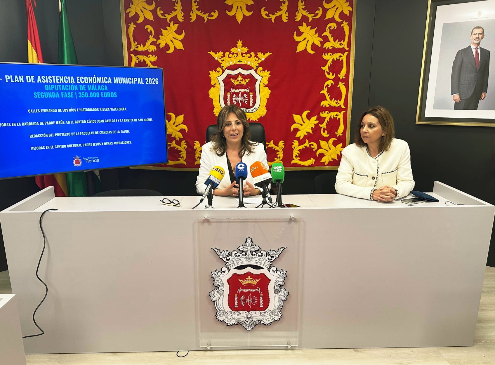 La alcaldesa de Ronda, Mari Paz Fernández, ha anunciado este martes inversiones en el municipio por casi dos millones de euros, procedentes, por un lado, del Plan de Asistencia Económica Municipal (PAEM) de la Diputación de Málaga, correspondiente a la segunda fase de 2026; y, por otro, del superávit municipal obtenido tras el cierre de las cuentas de 2024.